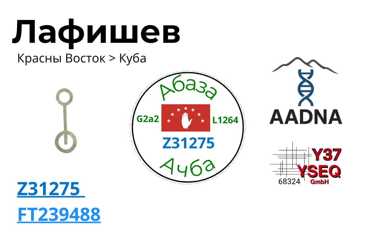 По результатам ДНК теста на 37 маркеров выявлена гаплогруппа G2a2 G-L1264. Лафишев попал в одну из самых интересных линий G-L1264, известную как ветка Ачба. В эту ветку попадает предполагаемый потомок легендарной абхазской царской фамилии Ачба. Также туда попадает большая часть известных тапантийских дворянских фамилий — Лоов, Бибердов, Дударуков, Трамов, Лиев итд. Лафишев совпал по результатами … Читать далее