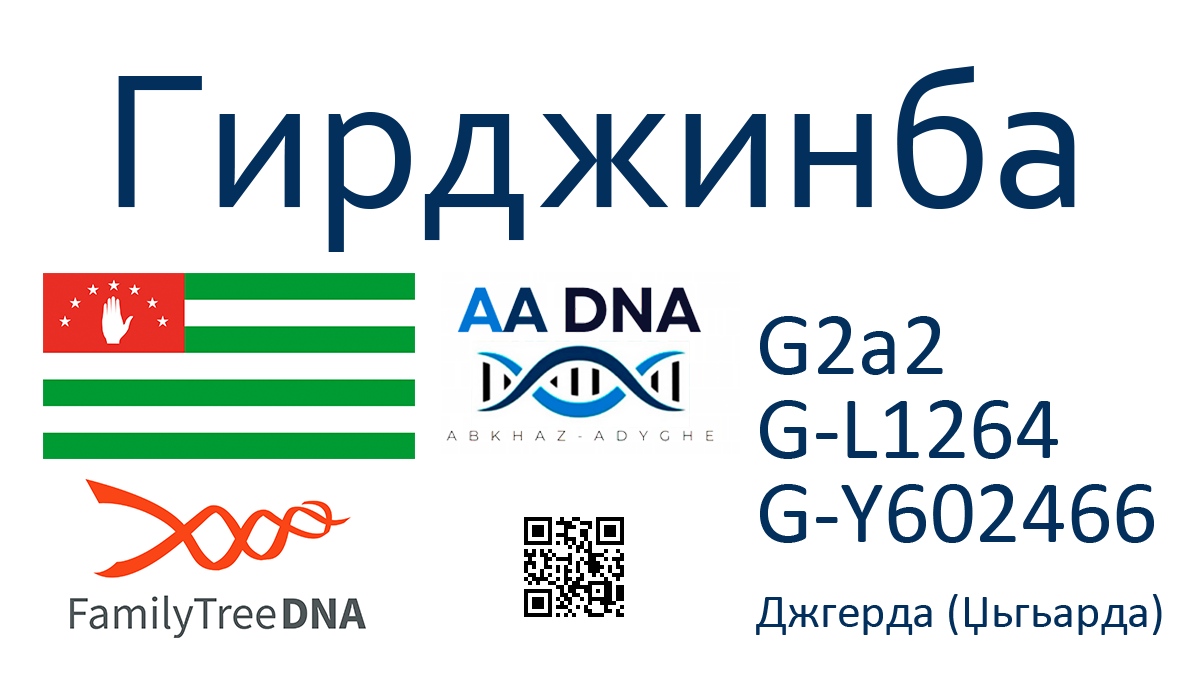 Фамилия: Гирджинба (Гырџьынба)Субэтнос: Абхаз (Абжуец)Населенный пункт: Джгерда (Џьгьарда)Гаплогруппа: G2a2 >> L1264 >> S9409 История Протестированный принадлежит к абхазской крестьянской (анхаҩы) фамилии Гырџьынба из села Джгерда (Џьгьарда). Исторически представители этой фамилии проживали в местности Гырџьынаа рхәы (Холм рода Гирджин). Вероятно, с фамилией связан упоминаемый на картах XIX века поселок Гирджин, расположенный на границе Джгерды и Цабала. … Читать далее