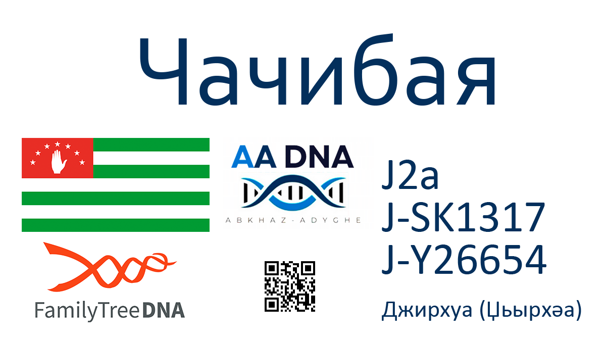 Фамилия: Чачибая (Чачбаиа)Национальность: Абхаз (Бзыпец)Населенный пункт: Джирхуа (Џьырхәа)Гаплогруппа: J2a >> SK1317 >> J-Y26654 История Протестированный принадлежит к абхазской дворянской (аамсҭа) фамилии Чачибая (Чачбаиа) из села Џьырхәа. Хотя более известна лыхненская ветвь фамилии. Имение Чачибая находилась практически в центре села, близ Лыхненского храма (изображенного на их фамильном гербе), владели также землями в поселках Бамбора и Аджимчигра. … Читать далее