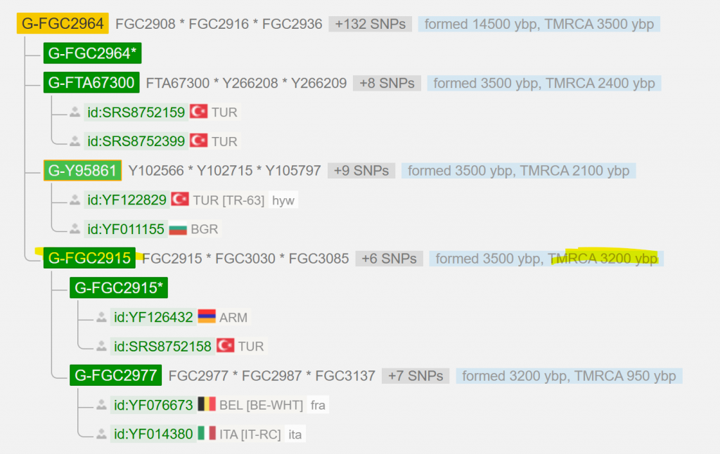Adam > A0-T > A1 > A1b > BT > CT > CF > F > GHIJK > G > P287 > Y238 > M3115 > FGC3095 > Y37100 > FGC2964 > FGC2915