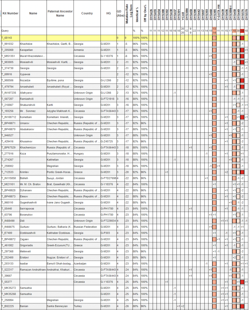 Поиск STR-совпадений в базе STR Match Finder помогает найти потенциальных родственников по мужской линии среди других протестированных из той же популяции. Мерой близости при этом служит генетическая дистанция, зависящая от числа мутационных различий