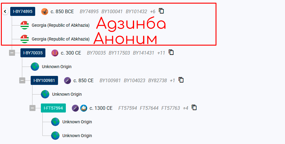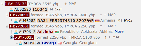 Согласно китайскому древу theytree общий предок Адзинба и грузина с Абхазии жил 2250 лет тому назад.