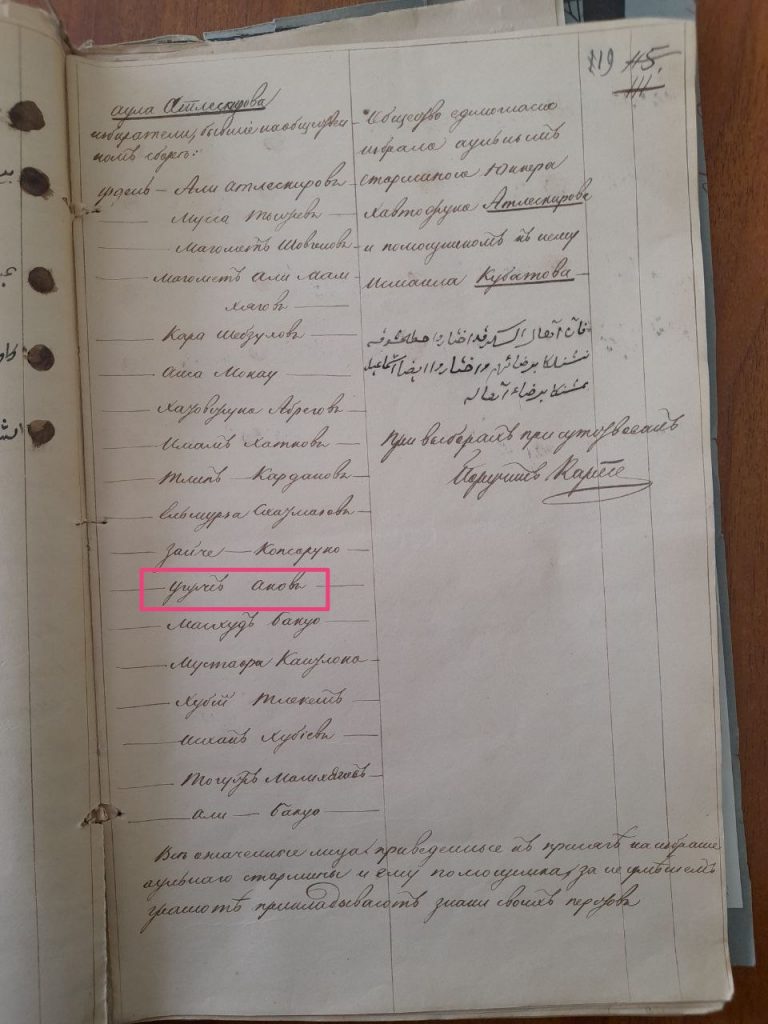 Предок протестированного по имени Гъущ, будучи из числа первопоселенцев, прибыл на нынешнее местонахождение аула вместе с его основателем Кубатовым. Также он упоминается в числе избирателей кандидатов на административные должности аула 1868 году