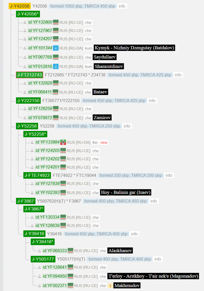 Гаплогруппа: J2a >> M67 >> Y3620 >> Y42056