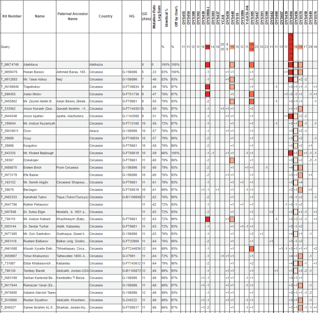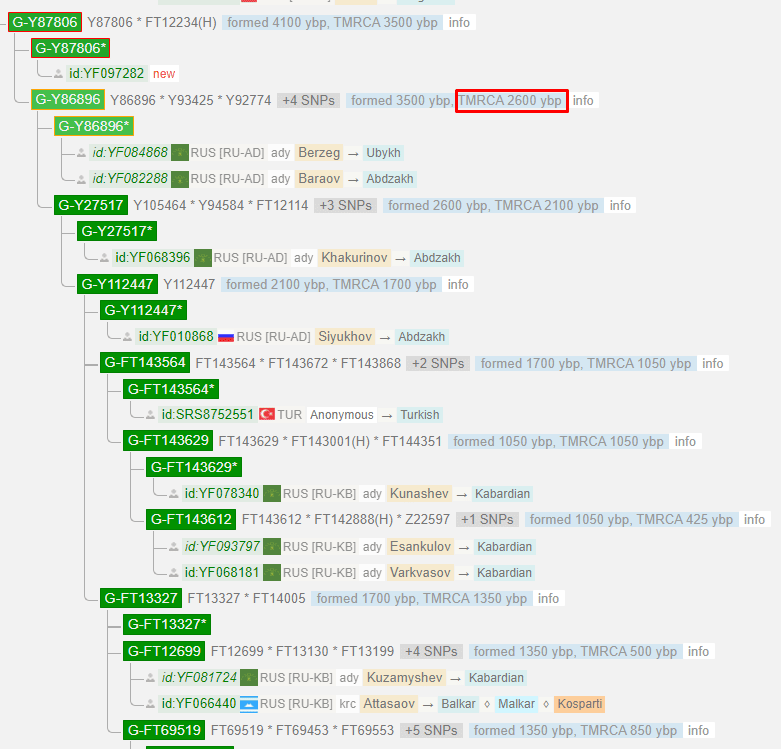 Общий предок Бараова и других размещенных на древе Yfull жил +- 2600 лет назад. У самого Бараова в списке совпадений Абшилава на одном из первых мест.