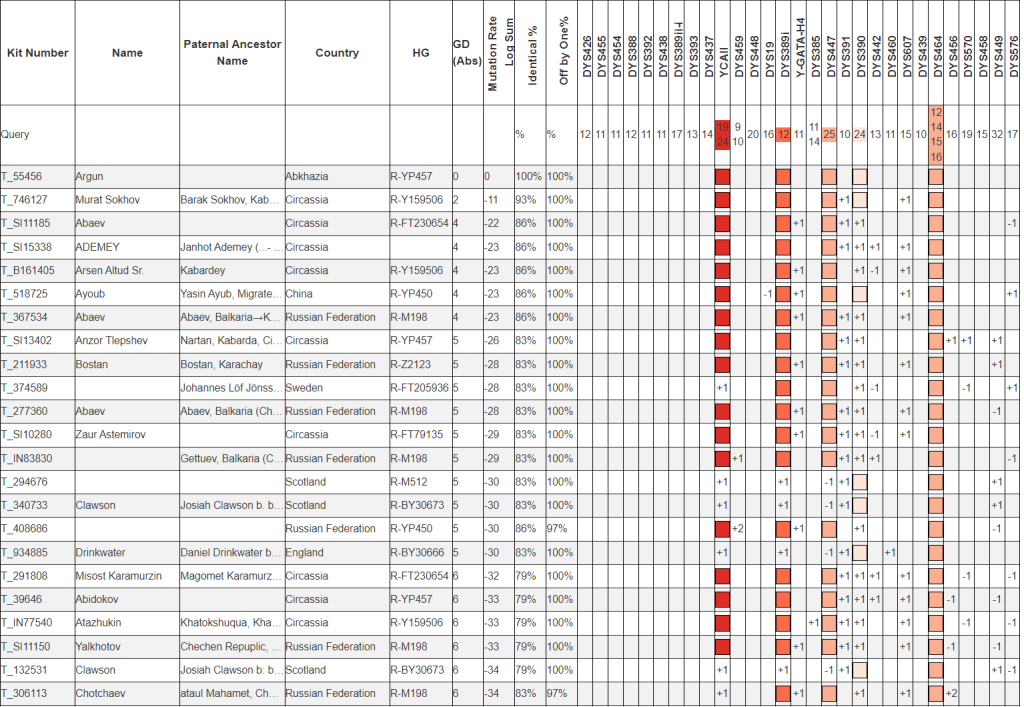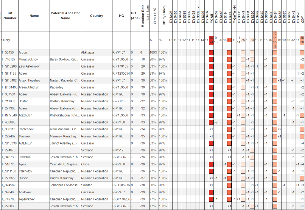 На следующем скриншоте совпадения без учета самого быстро мутирующего маркера CDY