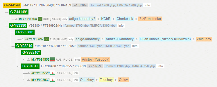 Y30992 одна из линий FGC21495. Все адыги пока расположены в Z44149. Это Жигунов (BigY), Пшихачев (SNP), Муков, Архестов, Арипшев, Шогов, Ермоленко(?) (WGS) . Возраст жизни общего предка ~ 1700 лет. Маан попадает в вышестоящий субклад Y30992.