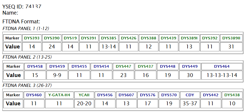 Исследовано 37 маркеров в лаборатории YSEQ.