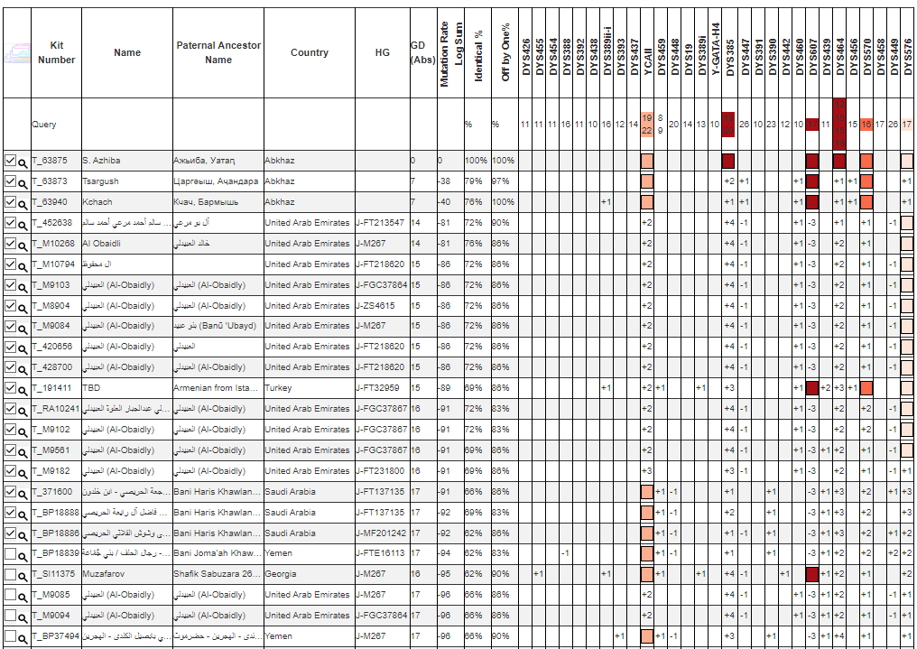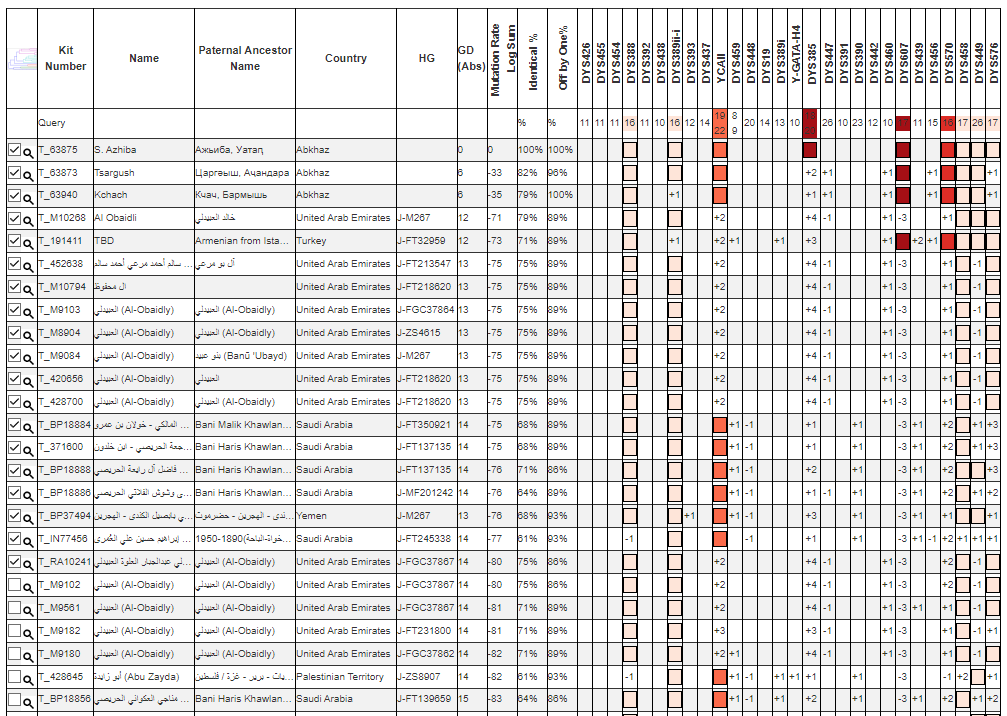 Поиск STR-совпадений в базе STR Match Finder помогает найти потенциальных родственников по мужской линии среди других протестированных из той же популяции. Мерой близости при этом служит генетическая дистанция, зависящая от числа мутационных различий