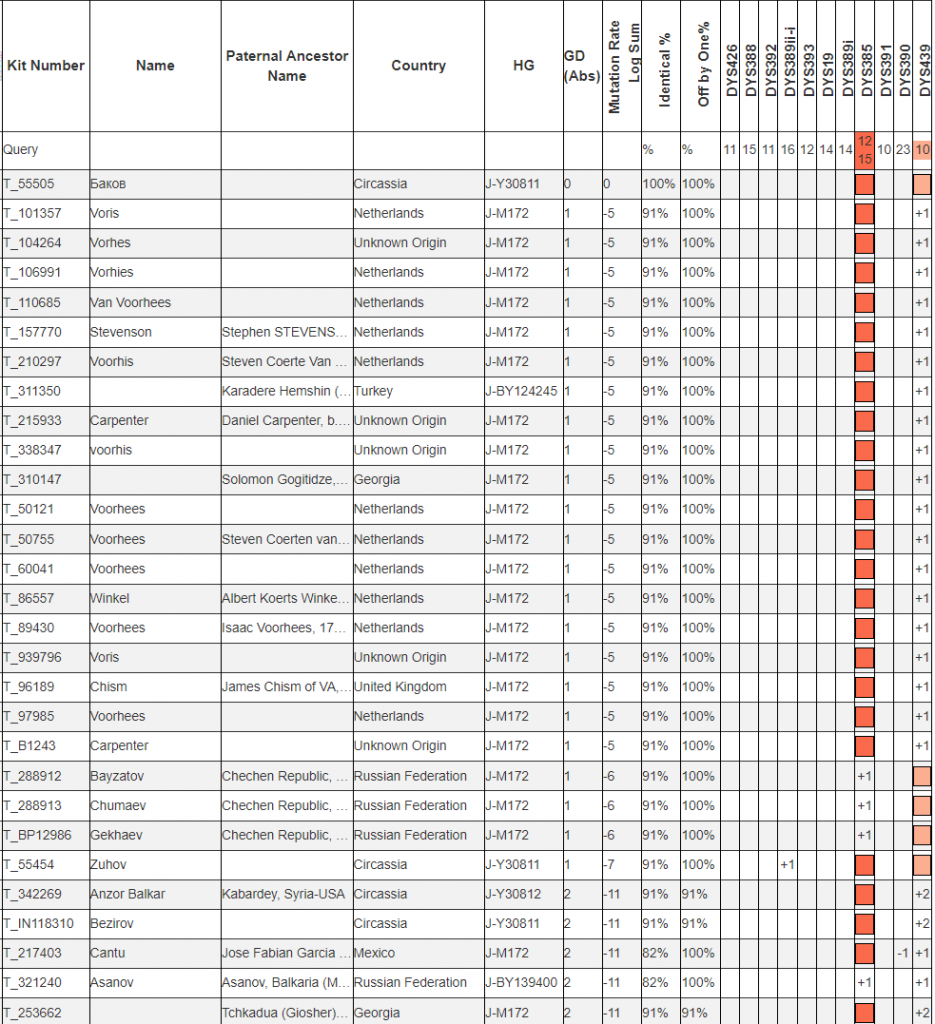 Исследовано 37 маркеров в лаборатории YSEQ.
