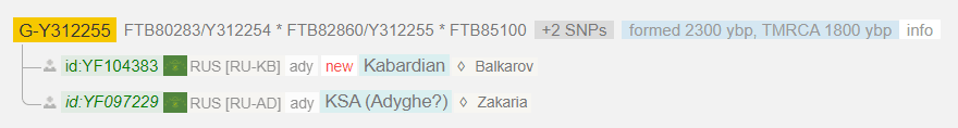Линия G-FTB4098 стоит отметить особо. Сейчас на древе Yfull только Калашаов, Балкаров и Черкес из Саудовской Аравии Закария. Плюс сюда же точно попадает Азербайджанец из Габалы Агаев.