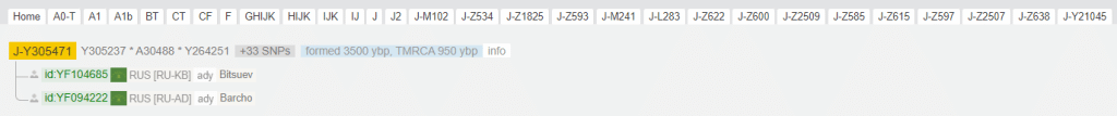 ~ 3500 лет назад адыгская линия Y305471 отделилась от предковой ветки.