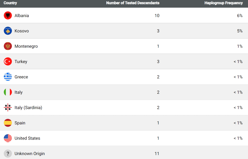 Большая часть Y21045 относятся к современным албанцам, однако общий предок значительной части из этих албанцев жил относительно недавно. Также встречаются немцы, итальянцы, испанцы, греки, турки, сербы. На древе FTNDA картина такая: