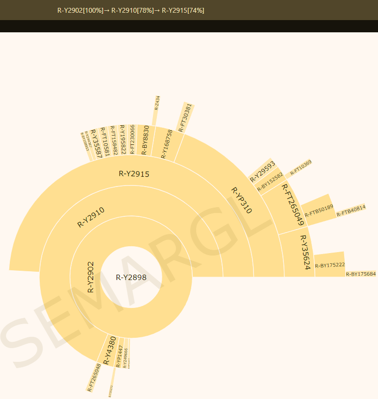 Adam > A0-T > A1 > A1b > BT > CT > CF > F > GHIJK > HIJK > IJK > K > K2 > K2b > P > P-V1651 > P-M1254 > P-P337 > P-P284 > P-P226 > R > R-Y482 > R1 > R1a > M459 > M735 > M198 > M417 > Z645 > Z283 > Z282 > Z280 > CTS1211 > Y2205 > Y35 > CTS3402 > Y33 > CTS8816 > Y2898 > Y2902 > Y2910 > Y2915 > Y35587