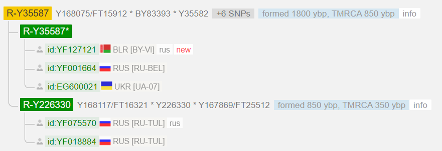 Выявлена гаплогруппа R1a >> Z280 >> Y2915 > Y35587