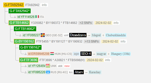 Гаплогруппа: G2a1 >> G-Z6692>> G-FTA92942