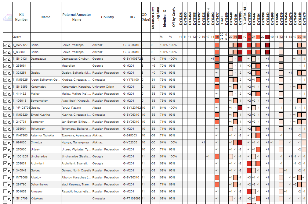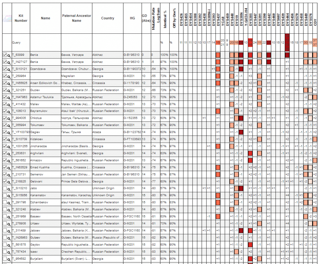 Выявленная гаплогруппа G2a1 на Кавказе в первую очередь связана с Кобанской культурой и поздними аланами, в контексте Абхазии ее можно связать с племенем мисимян.
