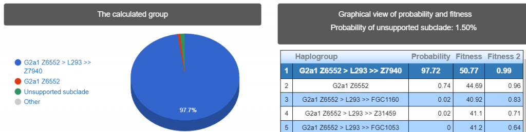 Выявлена гаплогруппа G2a1. Наиболее вероятные субклады FGC719 >> Z7940