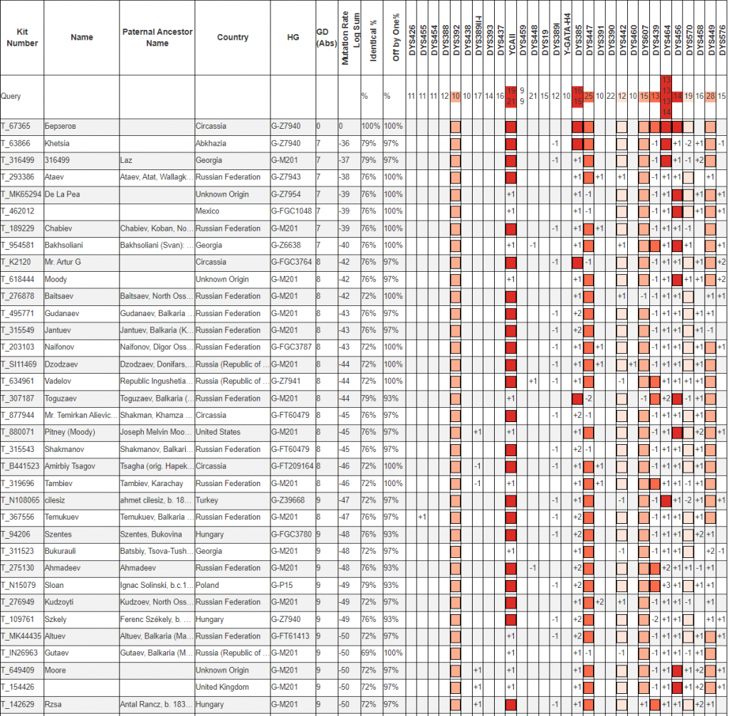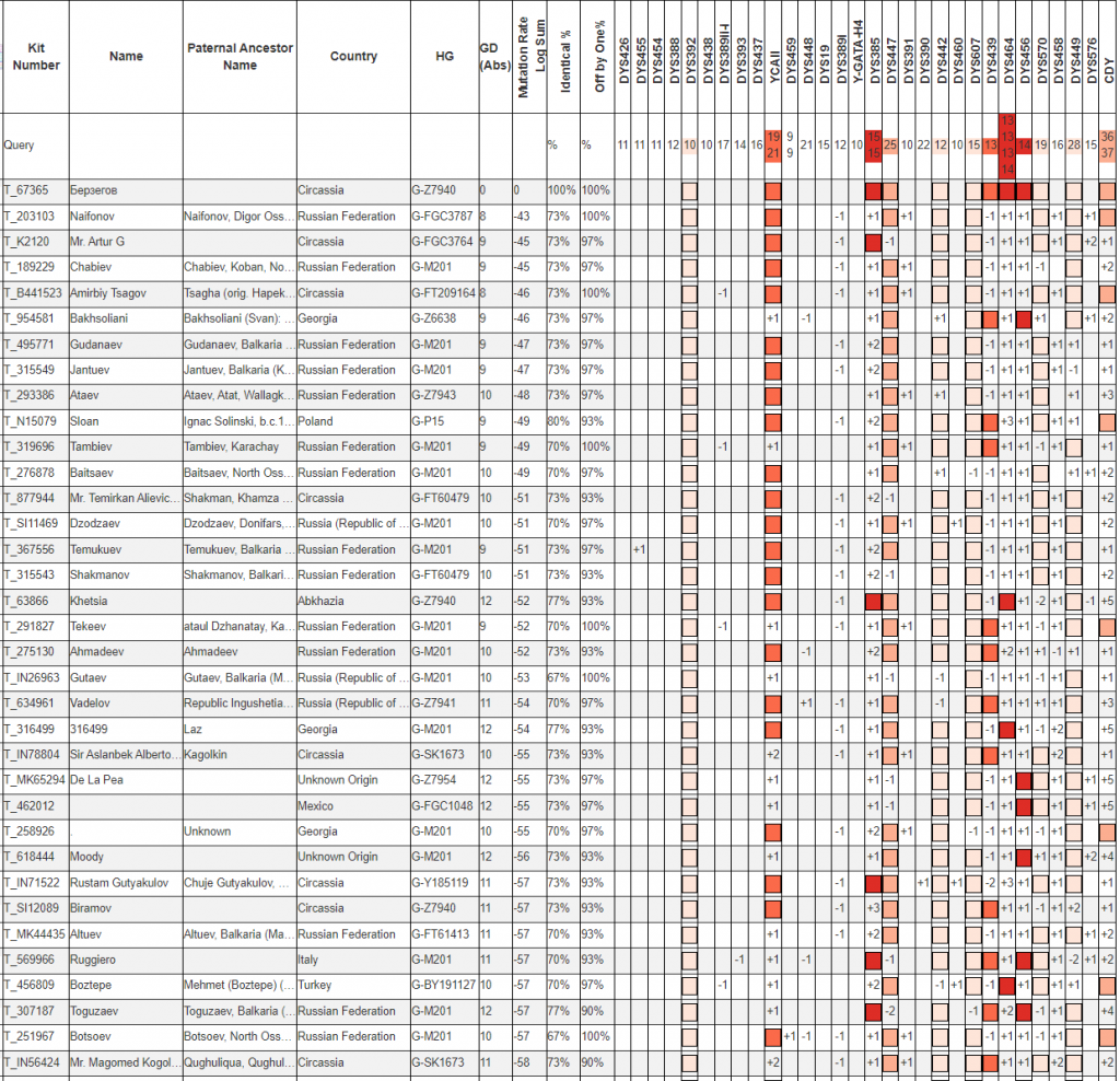 Результат совпал с Берзегом из этого же аула. Их единое происхождение не вызывает вопросов. При этом у Берзегов выявлено уже несколько разных линий.