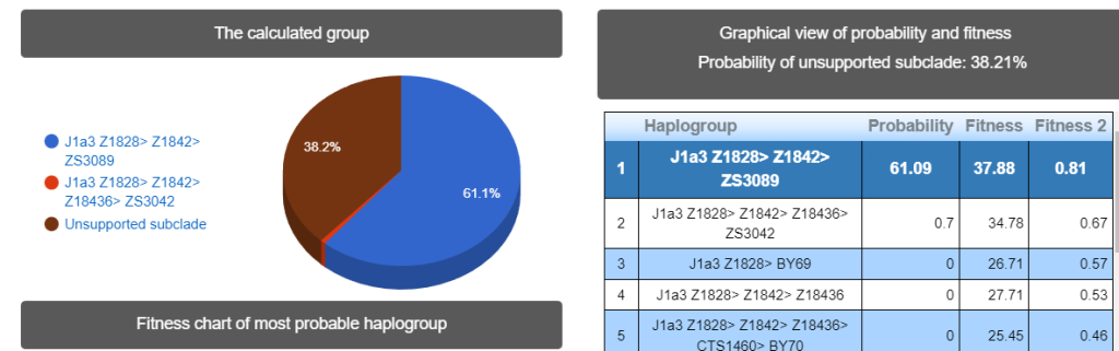 Выявлена гаплогруппа J1. Наиболее вероятный субклад