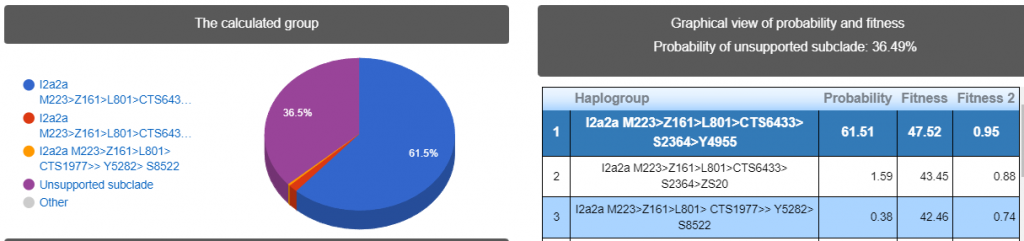 Выявлена гаплогруппа . Наиболее вероятный субклад .