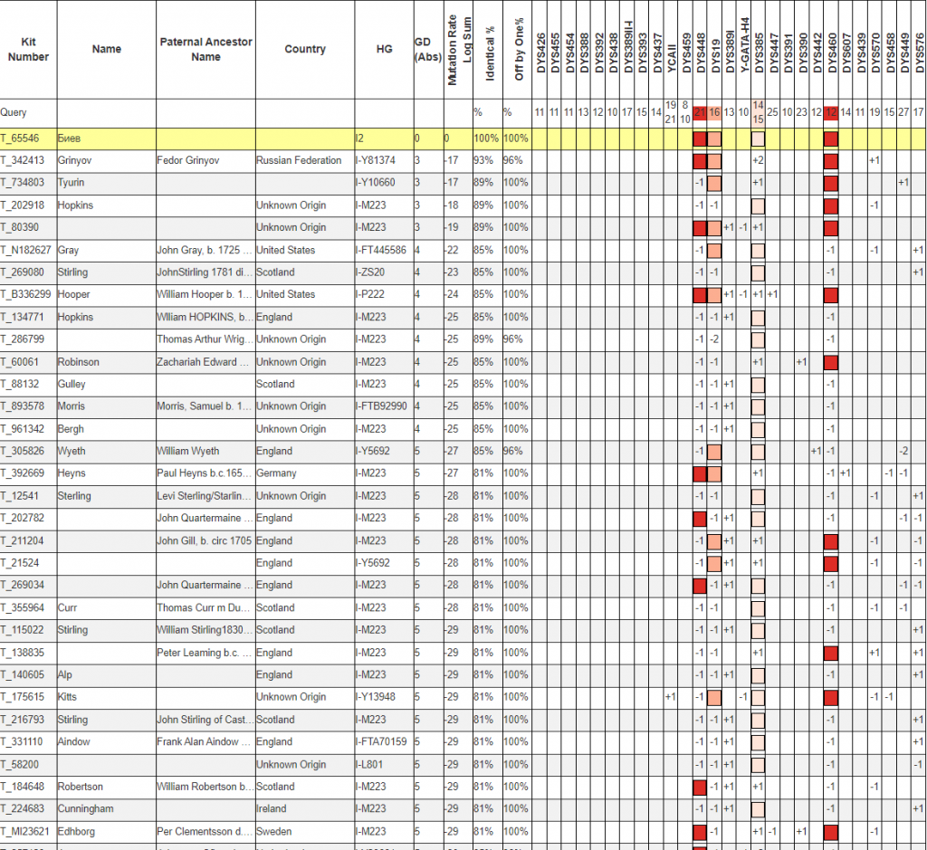 Исследовано 37 маркеров в лаборатории YSEQ.
