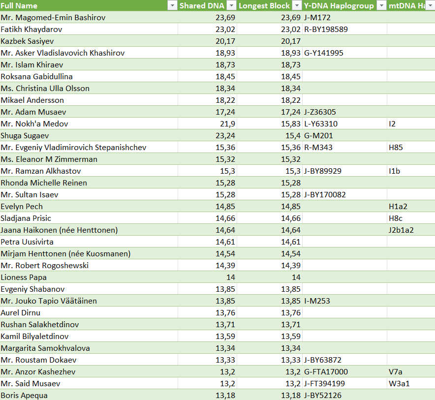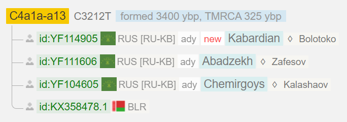 По материнской линии Болотоков совпал с Зафесовым и Калашаовым. Выявлена линия C4a1a-a13