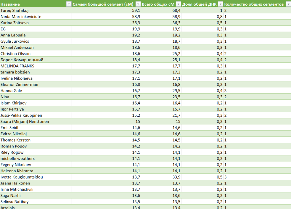 На этом сайте уже интереснее. Первые два совпадения в списке находятся на уровне родства от 5 до 7-8 поколений.