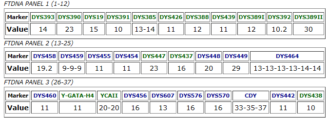 Исследовано 37 маркеров в лаборатории YSEQ.