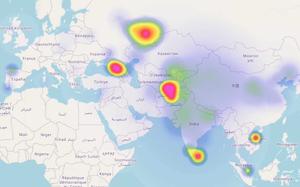 Ареал распространения очень большой, начиная с Китая и Индии и до Европы. В Европе не много представителей ветки, но встречаются в Англии, Португалии, Испании.
