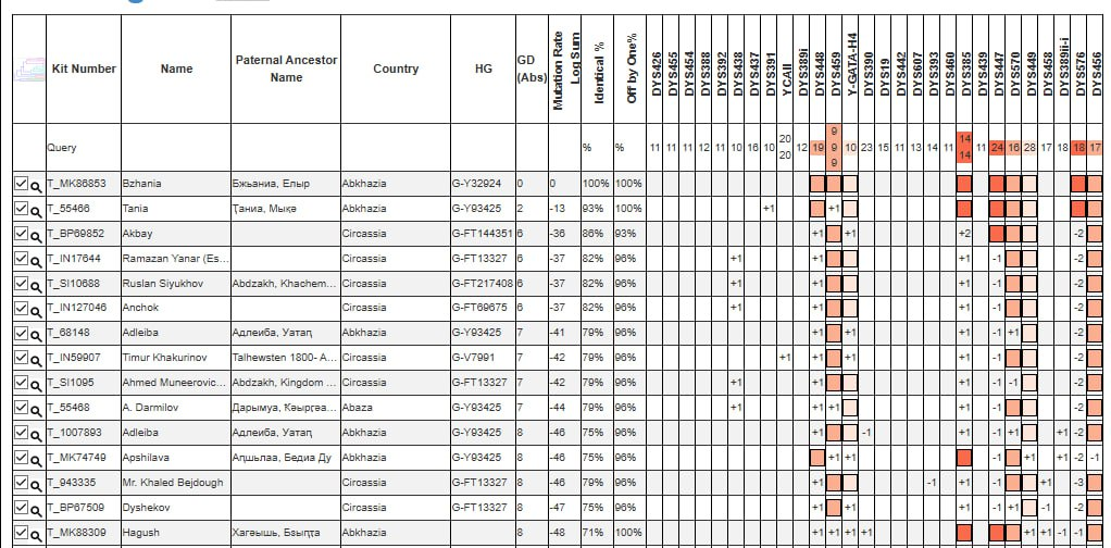 Ветвь Бжания на FTDNA
