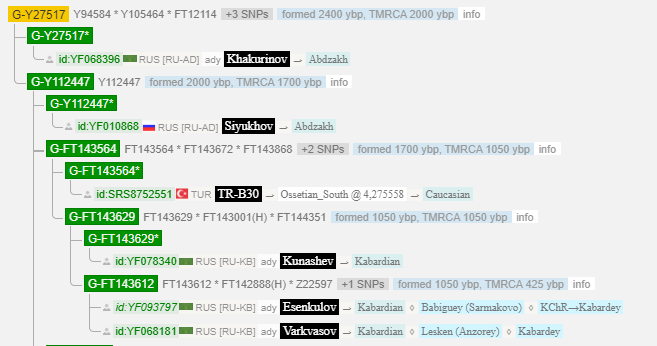 Ветвь Бжания на Yfull