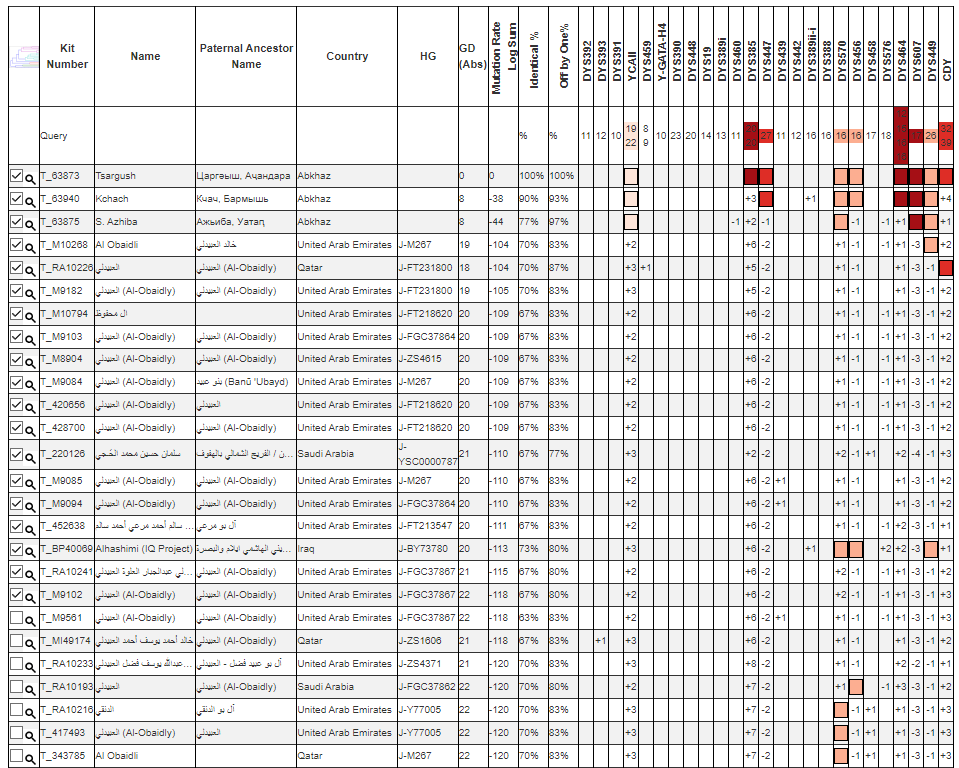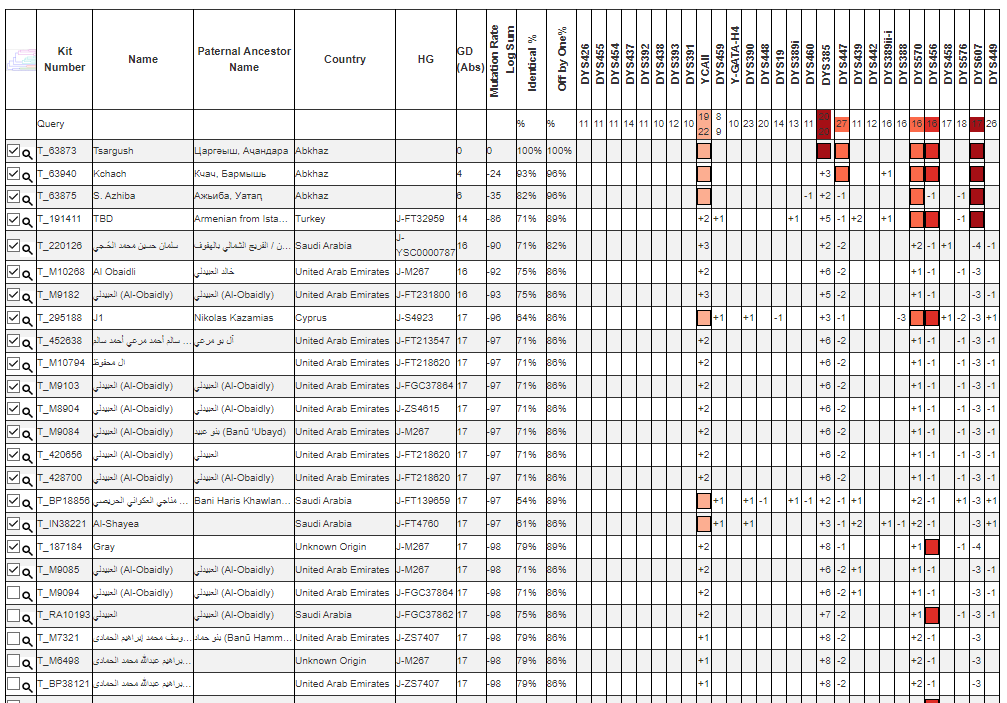 Поиск STR-совпадений в базе STR Match Finder помогает найти потенциальных родственников по мужской линии среди других протестированных из той же популяции. Мерой близости при этом служит генетическая дистанция, зависящая от числа мутационных различий