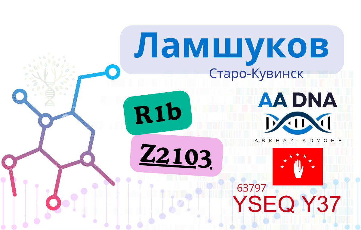 Фамилия: ЛамшуковСубэтнос: абазинНаселенный пункт: Старо-КувинскГаплогруппа: R1b >>Z2103 Исследовано 37 маркеров в лаборатории YSEQ. Выявлена гаплогруппа R1b. Предполагаемый субклад Z2103. Полная линия:Adam > A0-T > A1 > A1b > BT > CT > CF > F > GHIJK > HIJK > IJK > K > K2 > K2b > P > P-V1651 > P-M1254 > P-P337 > … Читать далее