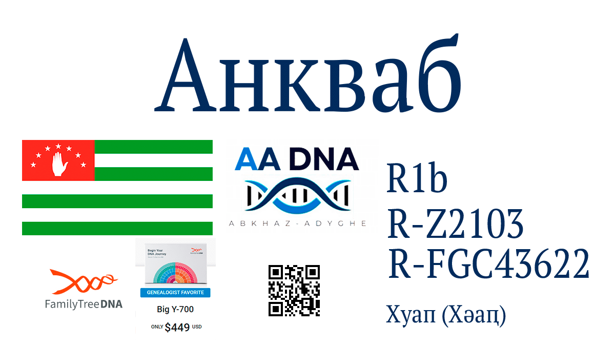 Фамилия: Анкваб (Анқәаб)Субэтнос: Абхаз (Бзыпец)Населенный пункт: Хуап (Хәаԥ)Гаплогруппа: R1b >> Z2103 >> FGC43622 В самом начале хотелось бы упомянуть что данный тест был приобретён общими усилиями участников чата проекта. Хочется искренне поблагодарить каждого из вас за поддержку и участие в сборе средств на данный ДНК тест. Благодаря вам мы смогли осуществить эту задачу. Родословная сдавшего: … Читать далее