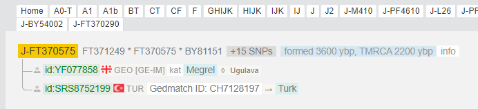 Гаплогруппа: J2a >> M67 >> Y11200 >> FT370290