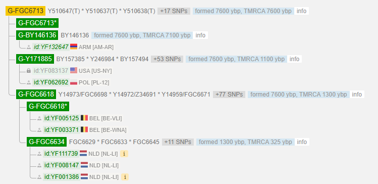Adam> A0-T > A1 > A1b > BT > CT > CF > F > GHIJK > G > P287 > Y238 > P15 > L1259 > PF3147 > PF3148 > PF3177 > FGC6669 > FGC6663 > Y14935 > FGC58131 > FGC58165 > M286 > Y84562