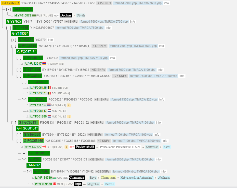 Примечательно что оба данных кластера объединяет снип G-FGC6663 в корне которого находится Убых из рода Дечен: