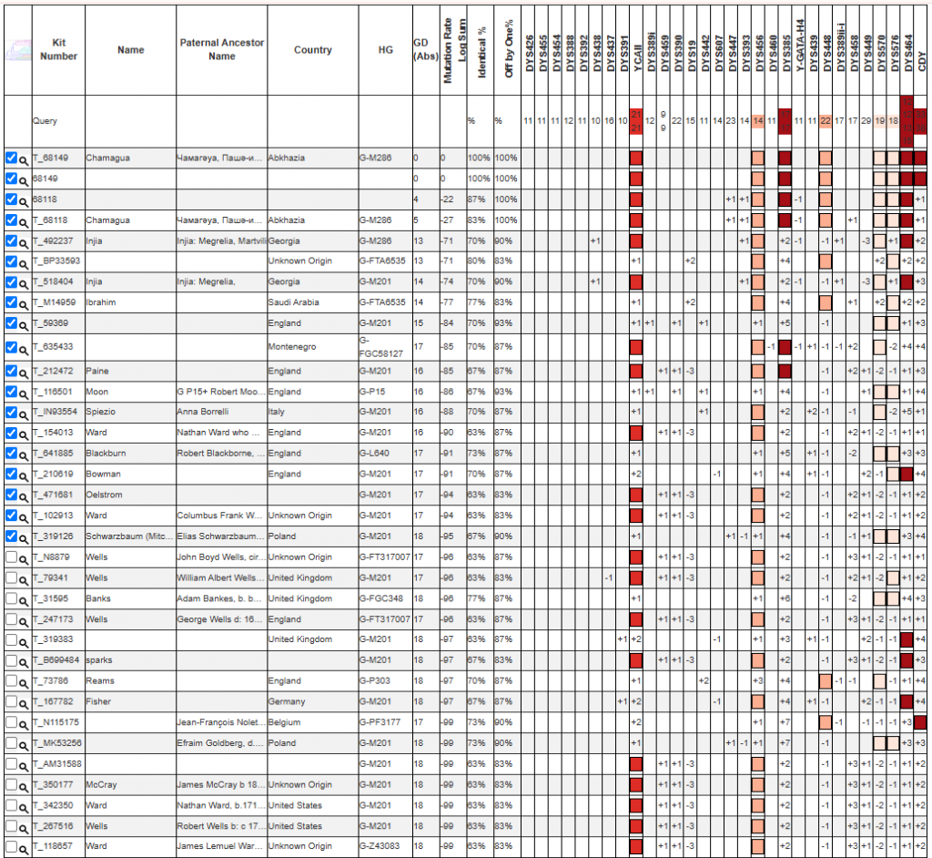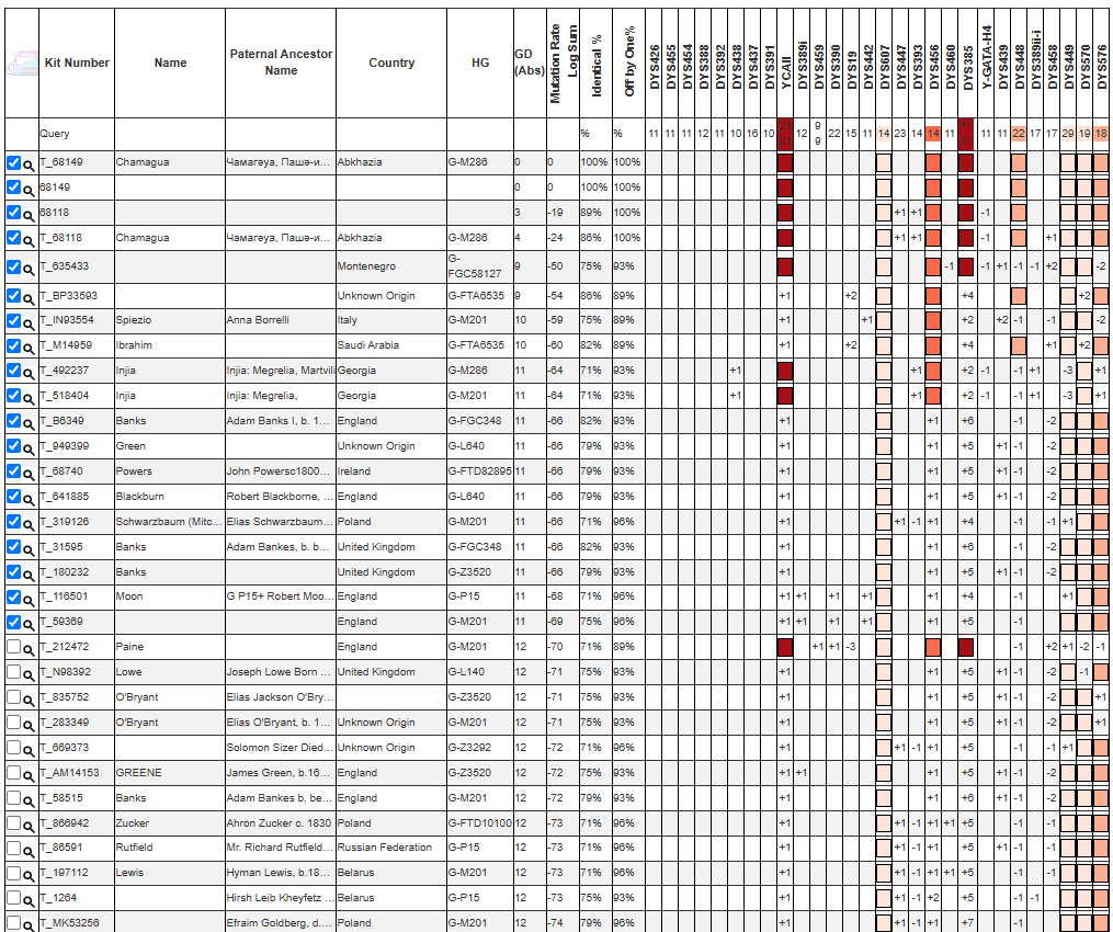 Поиск STR-совпадений в базе STR Match Finder помогает найти потенциальных родственников по мужской линии среди других протестированных из той же популяции. Мерой близости при этом служит генетическая дистанция, зависящая от числа мутационных различий