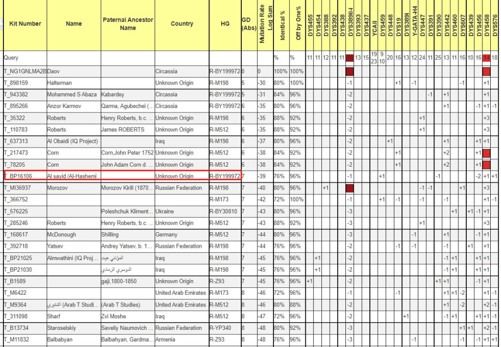Ближайший совпаденец из тех у кого выявлена та же ветка что и у Даова выделен на скриншоте (см. 16скрин)