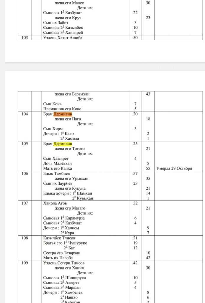 Они упоминаются в «Посемейным списке Туземцов водворенных в Кувинском ущелье за 1864 год.» (Государственный архив Краснодарского Края Ф. 355, Оп. 1, Д.58.)