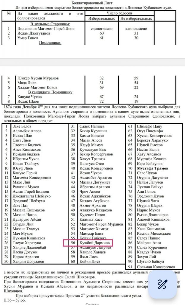 Аул Лоова на Кубани, 1866 год. Упоминание известного раннего предка Дармиловых из Старокувинска. Хасана, он же Кучбий (Кужби)