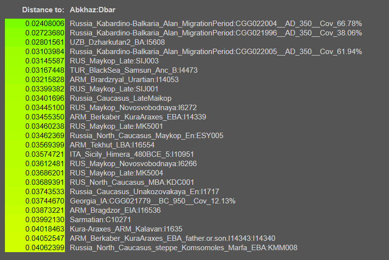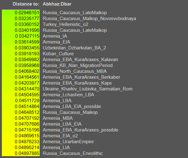 Субклад в который попали Дбар связан с Кавказскими охотниками-собирателями (CHG).