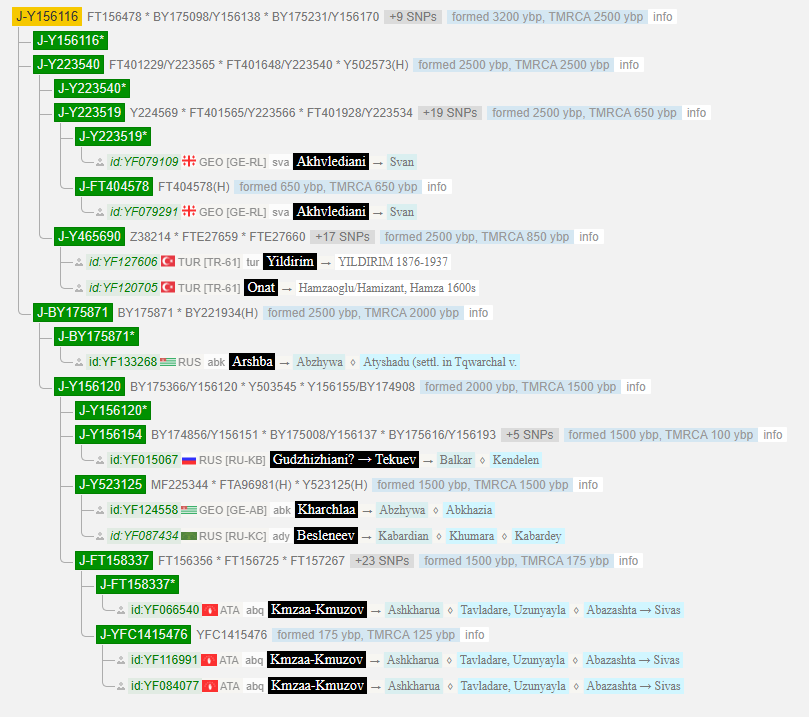Выявленный субклад является один из наиболее массовых для абхазо-адыгов.