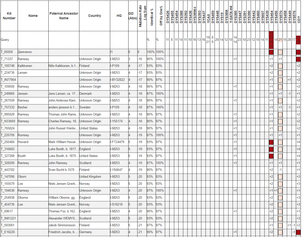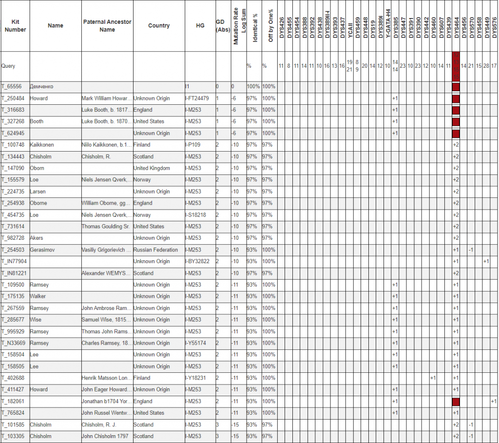 Исследовано 37 маркеров в лаборатории YSEQ.