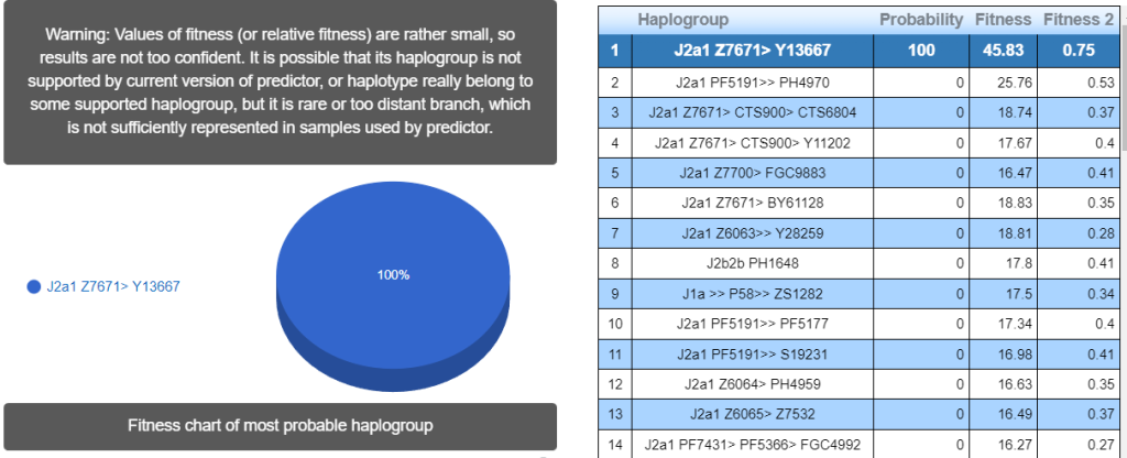 Выявлена гаплогруппа J2a. Наиболее вероятный субклад M67 >> Y198797