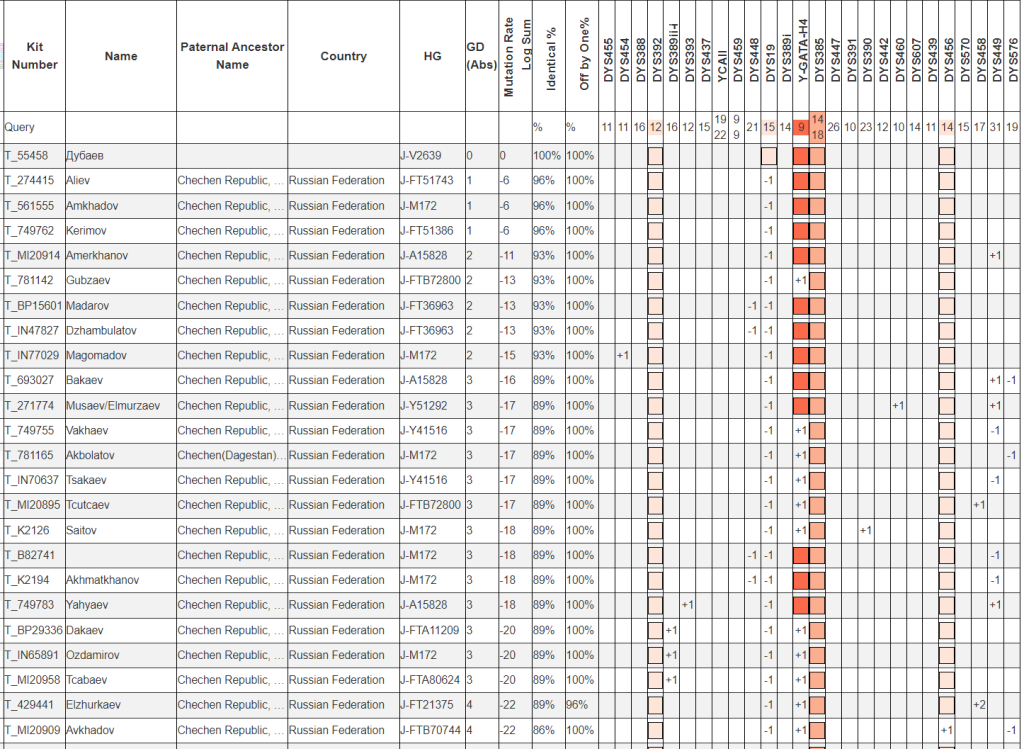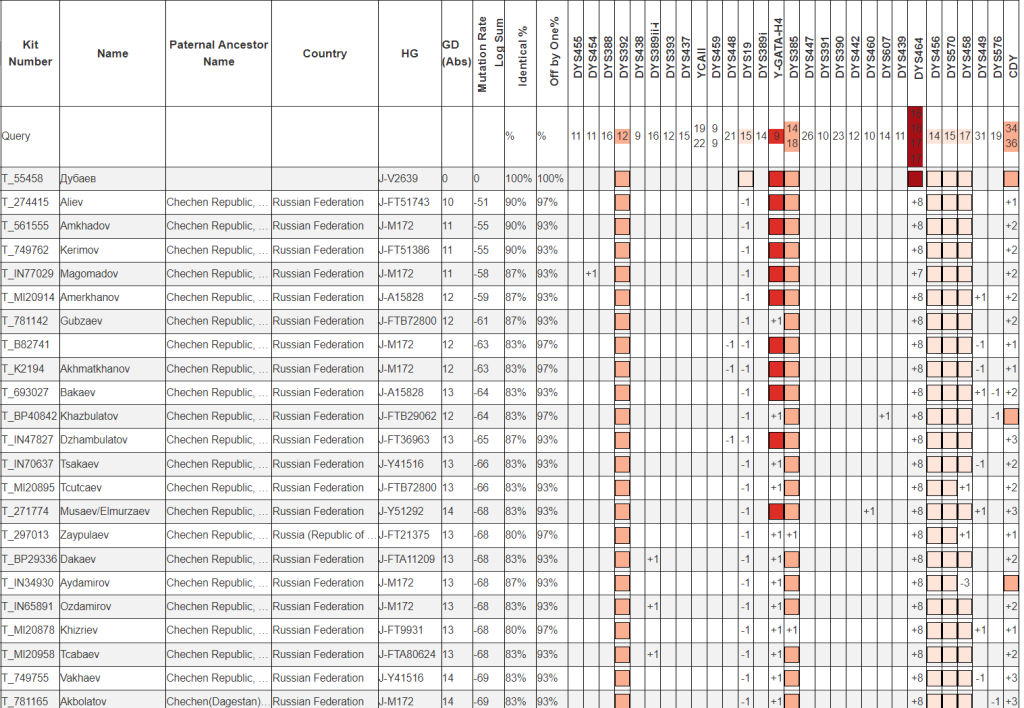 Поиск STR-совпадений в базе STR Match Finder помогает найти потенциальных родственников по мужской линии среди других протестированных из той же популяции. Мерой близости при этом служит генетическая дистанция, зависящая от числа мутационных различий
