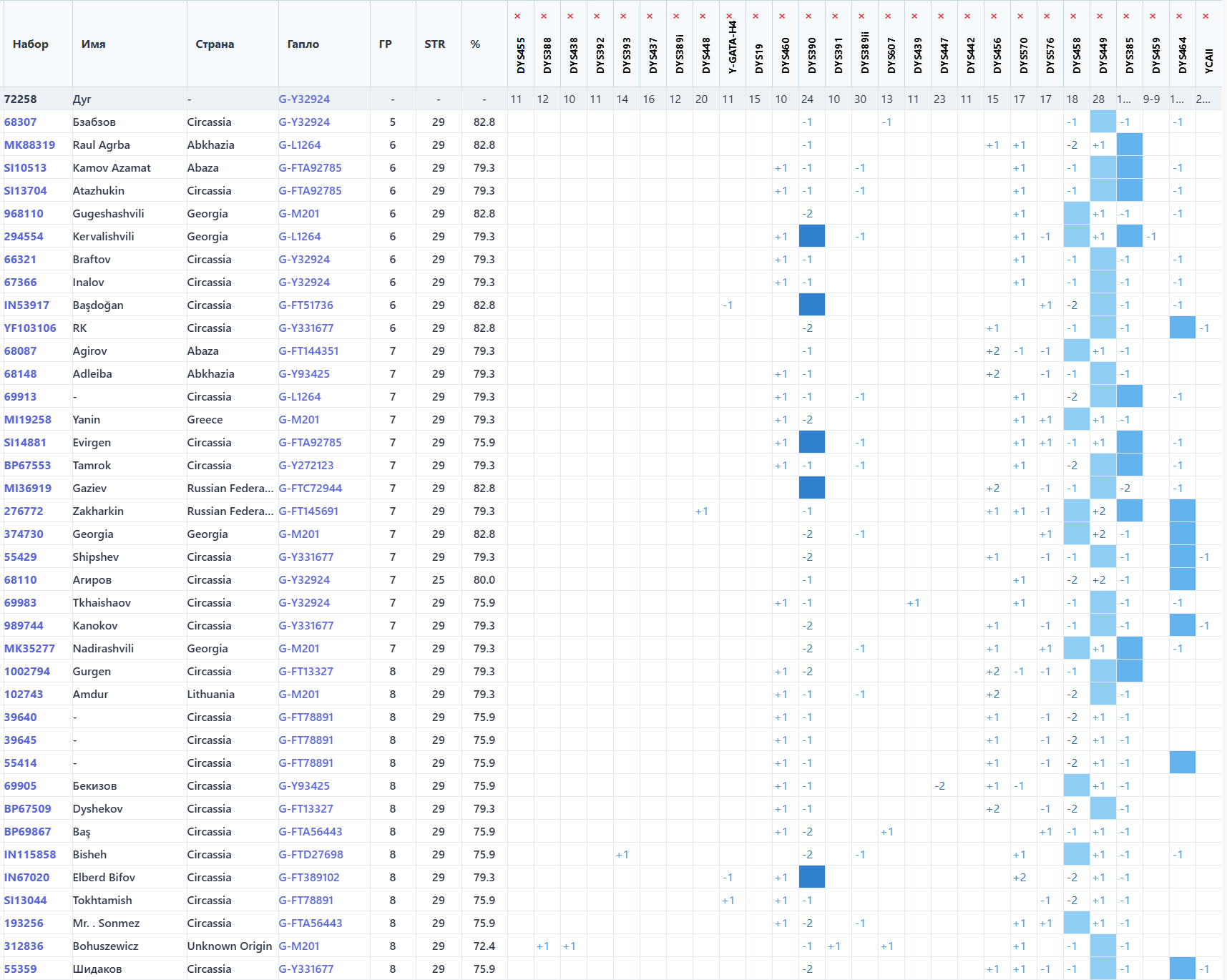 Поиск STR-совпадений в базе STR Match Finder помогает найти потенциальных родственников по мужской линии среди других протестированных из той же популяции. Мерой близости при этом служит генетическая дистанция, зависящая от числа мутационных различий