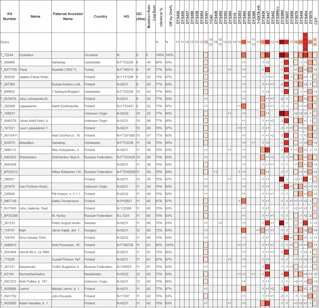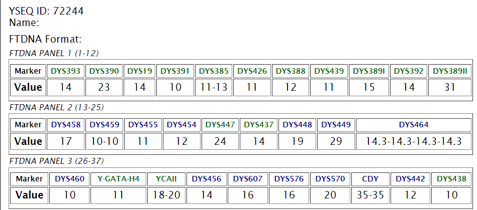 Исследовано 37 STR маркеров Y-хромосомы в лаборатории YSEQ