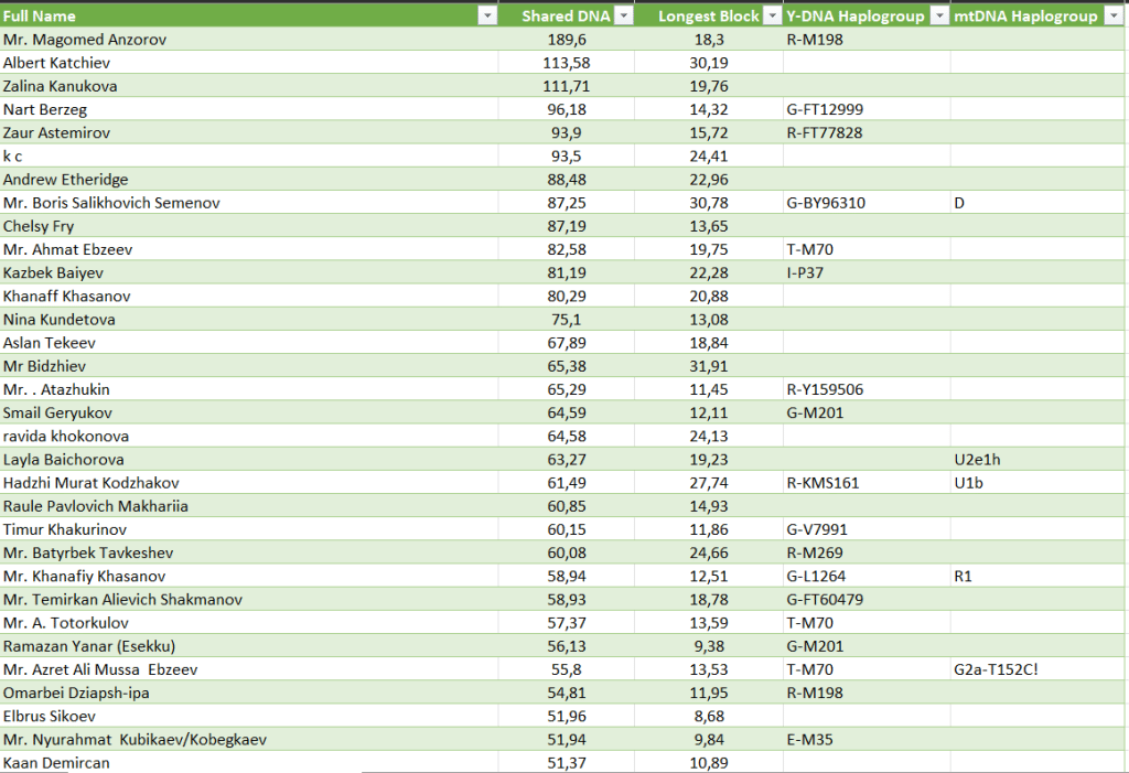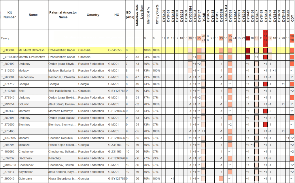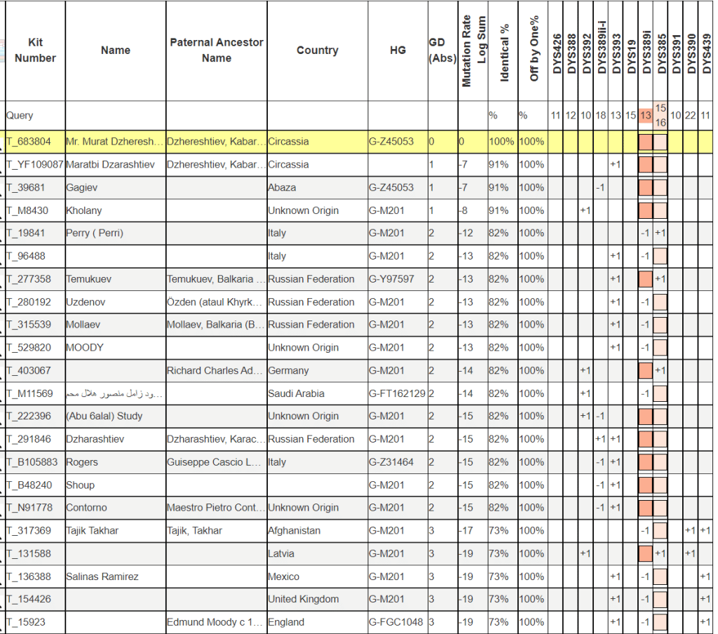 Материнская линия протестированного Джараштиева относится к известной абазинской фамилии Бибердов. Выявленная линия U5a1b13